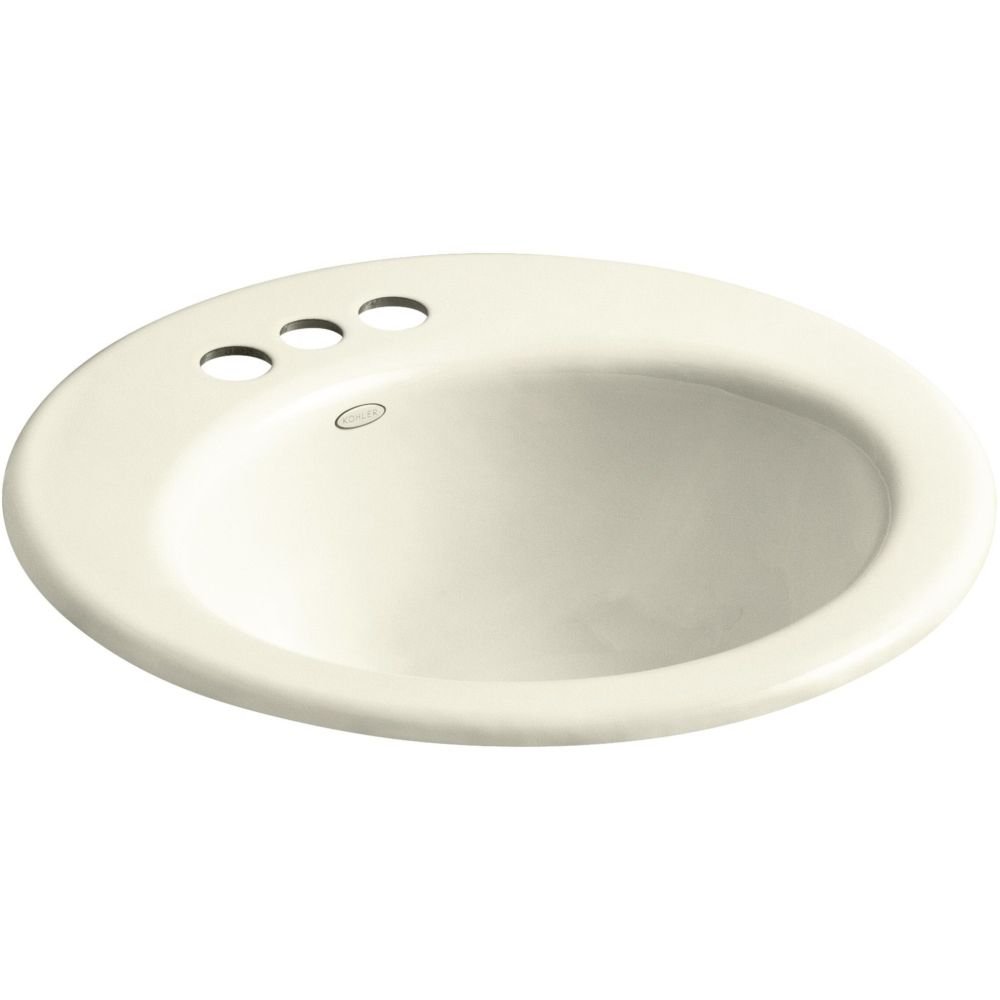 Image 1: KOHLER K-2917-4-FD Radiant Drop-In Bathroom Sink in Cane Sugar finish.
