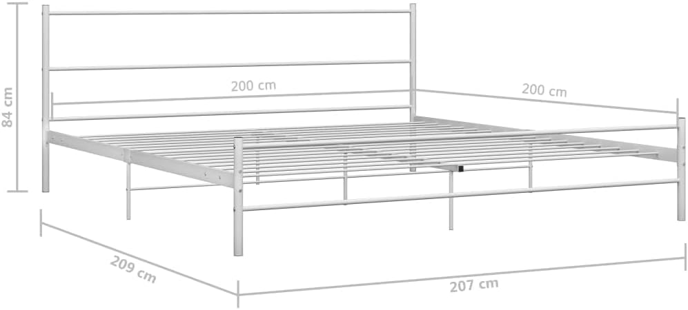 This vidaXL metal bed frame, model 284698, is designed for a 200 x 200 cm mattress. It features a simple, timeless design with a sturdy, powder-coated metal construction that is scratch and impact resistant. The flexible metal slatted base provides a comfortable foundation for your mattress. This package includes the bed frame only; a mattress is not included.