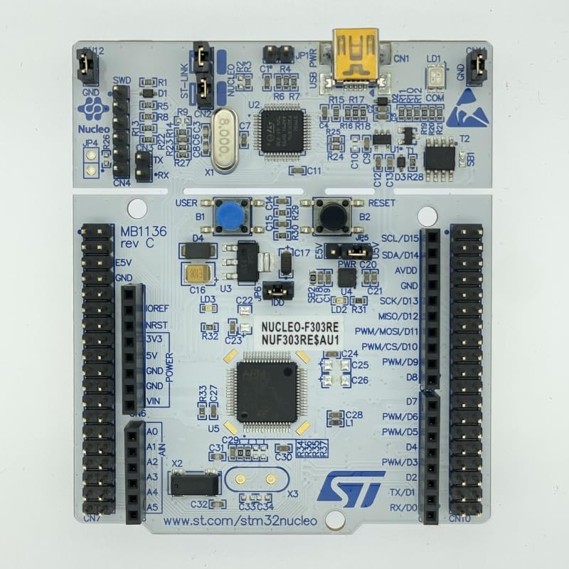 - Programación: Use your IDE to compile and flash your code to the STM32F303RET6 microcontroller. The ST-LINK/V2-1 debugger handles the programming process.